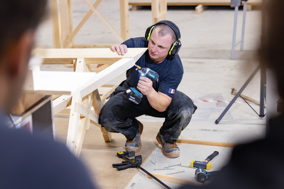 La deuxième journée, la plus dense, a été marquée par une montée en pression : les compétiteurs devaient enchaîner les modules techniques, respecter des temps de séchage millimétrés en peinture, finir la taille de pièces en charpente ou avancer sur des montages complexes en plomberie et en électricité. C’est souvent à ce moment que se joue la médaille.
