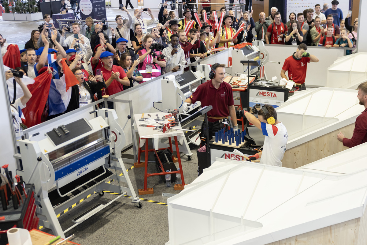 Vendredi 13 septembre, la compétition mondiale des métiers WorldSkills bat son plein en ce troisième jour à Lyon. Encore plus de 30 000 jeunes ont foulé ce vendredi les allées des stands, en particulier ceux des 14 métiers du pôle Construction, qui n’ont pas désempli. Encouragés par leurs supporters venus en nombre, les compétiteurs français restent immergés et concentrés dans leur épreuve. Avant le coup de sifflet final demain dans la matinée, la pression est montée d’un cran. La gestion du temps est cruciale, chaque minute compte ! Il faut rester précis sans se précipiter. Maintenir une rapidité tout en assurant l’excellence du geste métier.