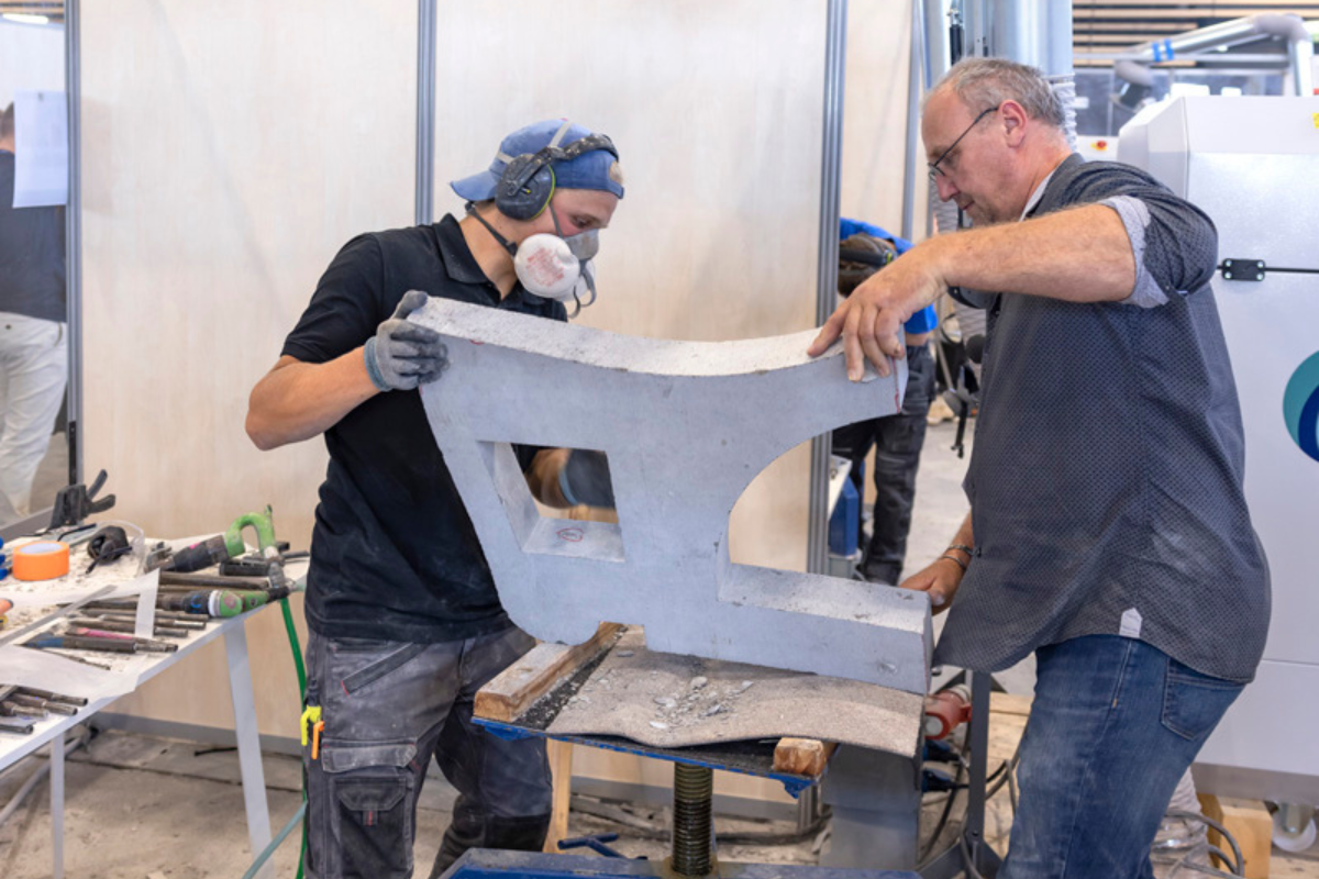 La pierre est vive, « elle éclate », sur le stand de taille, ce jeudi matin. « Le bruit est caractéristique d’une pierre dure : ce sera toute la difficulté de l’épreuve, annonce Jérôme Godreau, juré Nouvelle-Aquitaine. Un mauvais geste et ça ne pardonne pas ! » Le challenge qui réunit 12 tailleurs de toute la France, consiste à tailler un trône de pierre dans un matériaux local (Rhône-Alpes et Ardèche), la pierre de Ruoms.