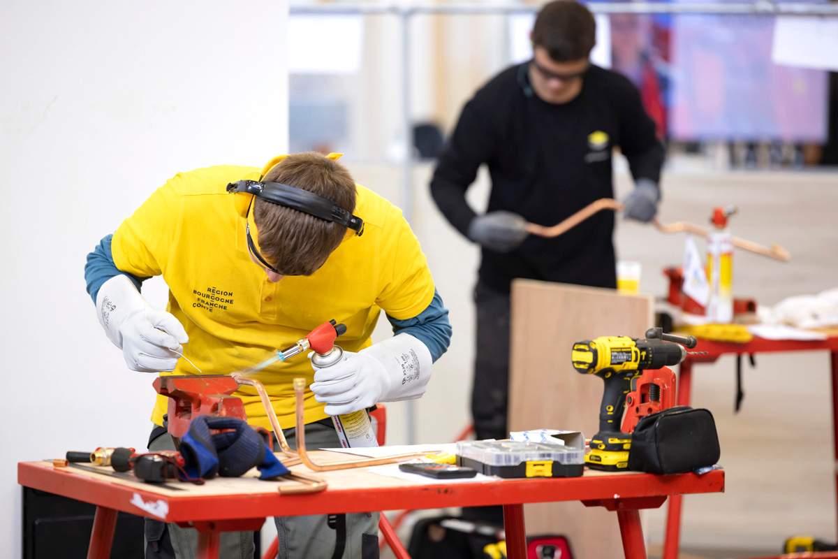 j’ai participé à la création de l’épreuve avec l’équipe métier, j’accompagne aussi les compétiteurs. Et puis, je suis venu avec mes apprentis d’Angers : je suis aujourd’hui formateur chez les Compagnons du Devoir et du Tour de France. J’ai pris goût à la transmission, quel enrichissement de partager son métier ! »