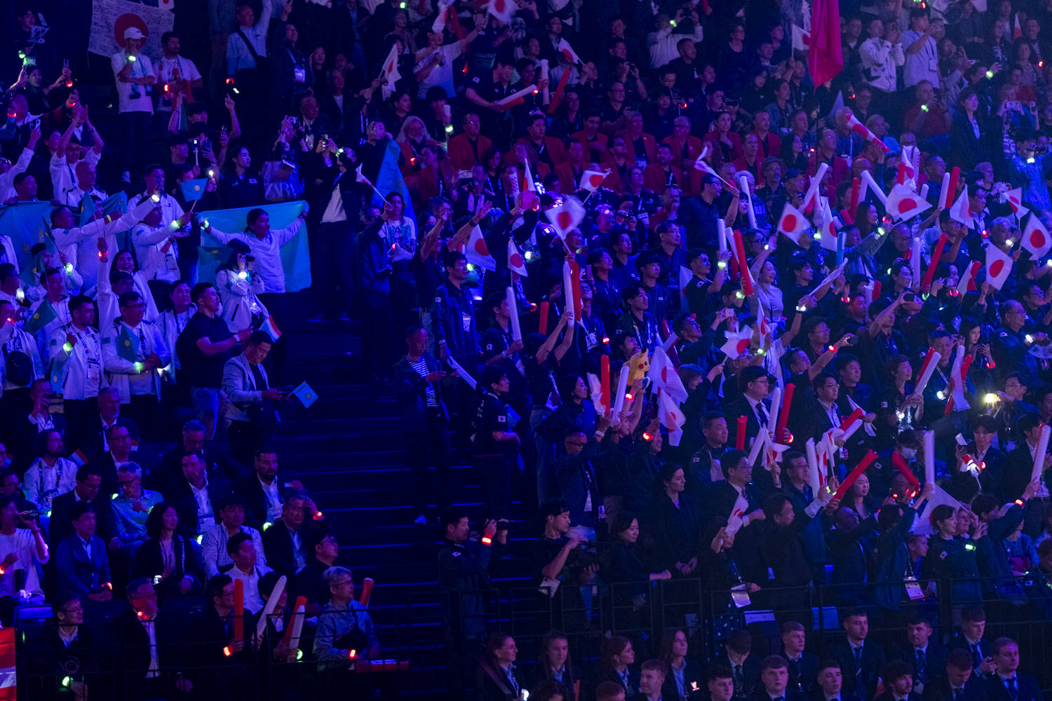 Après la parade des nations, des chorégraphies lumineuses de haute volée – à plusieurs mètres du sol ! – ont été ponctuées par les interventions officielles. Excellence, générosité, ouverture, unité : Max Roche, président du Comité d’organisation WorldSkills Lyon 2024, et Chris Humphries, président de WorldSkills International, ont rappelé l’état d’esprit unique de la compétition. Celles-ci ont également été évoquées lors des serments par les compétiteurs et les experts métiers. Le français Yann Jallu, en sa qualité d’expert WorldSkills France en ébénisterie, a ainsi promis « d’exercer ses fonctions en toute impartialité, en acceptant le code éthique de conduite, le règlement de la compétition et les valeurs de justice et de transparence. » La cérémonie a été clôturée par la déclaration officielle du président de la République Emmanuel Macron présent aux côtés de l’Équipe de France des métiers, qui a déclaré : « Je proclame la 47e compétition WorldSkills ouverte ! ». Une présence qui a prouvé, une nouvelle fois, l’importance des « skills », ces compétences métiers qui permettent de faire face aux grands défis actuels et à venir…